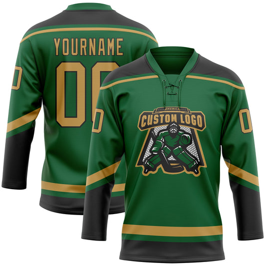 Custom Kelly Green Old Gold-Black Hockey Lac...