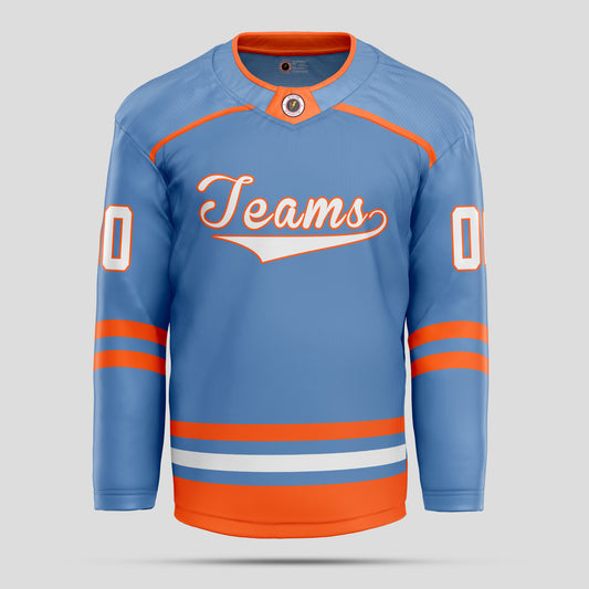 Custom Light Blue, Orange, and White Hockey ...