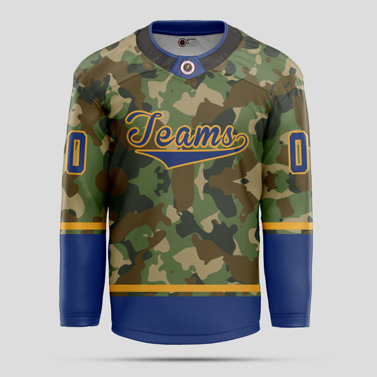 Custom Navy Blue and Gold Camo Hockey Jersey...