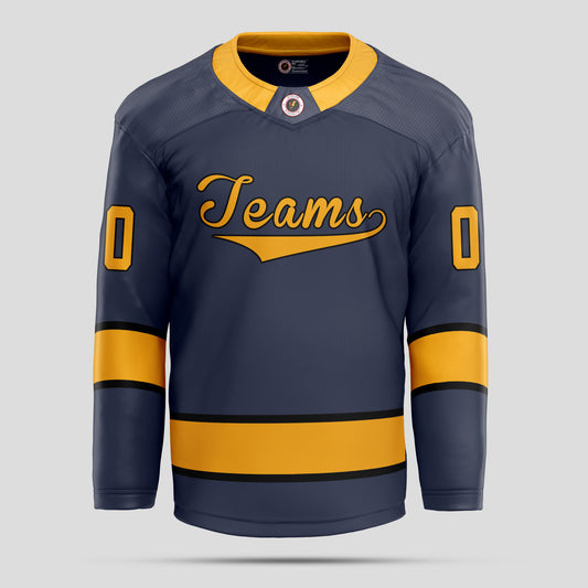 Custom Navy Blue and Old Gold Hockey Jersey ...