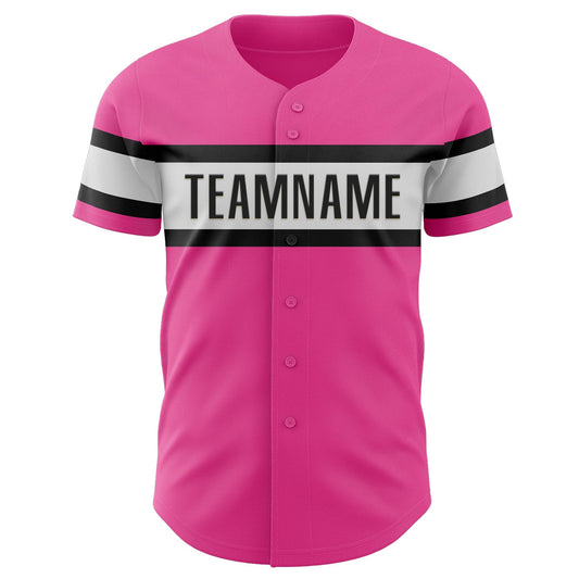 Custom Pink White-Black Hockey Lace Neck Jersey