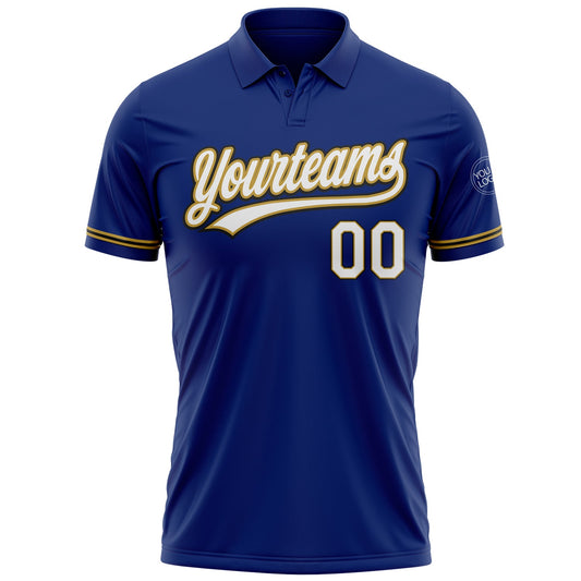 Custom Royal White Navy-Yellow Hockey Lace N...