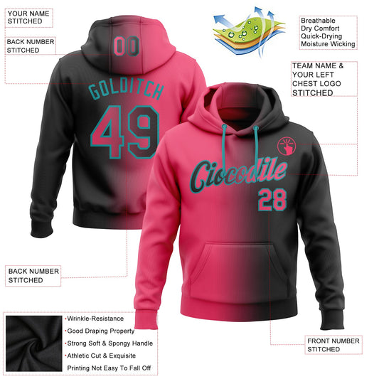Custom Stitched Black Neon Pink-Teal Gradien...