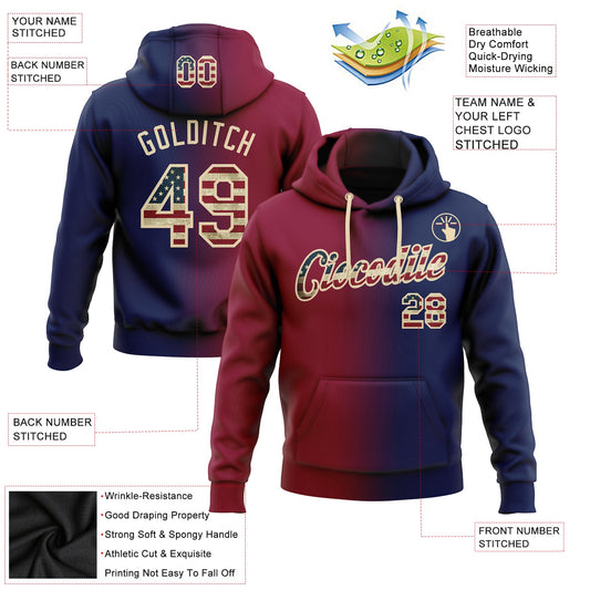 Custom Stitched Navy Vintage USA Flag Maroon...