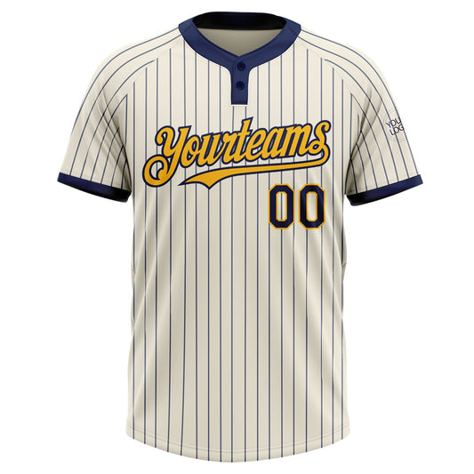 Custom Cream Navy Pinstripe Navy-Red Softbal...