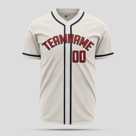 Custom Cream Navy-Red Baseball Jersey - Elit...