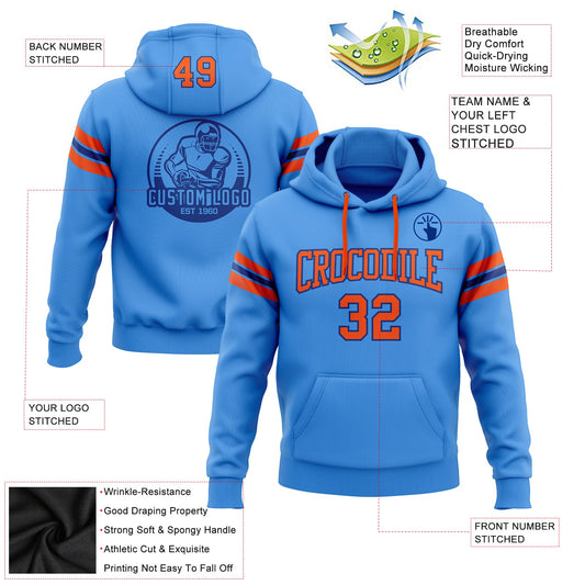 Custom Stitched Electric Blue Navy-Orange Fo...