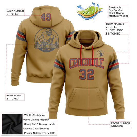 Custom Stitched Old Gold Steel Gray-Red Foot...