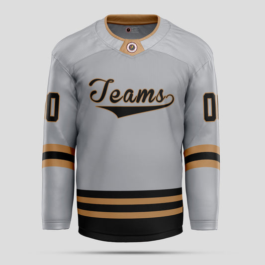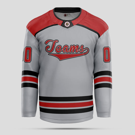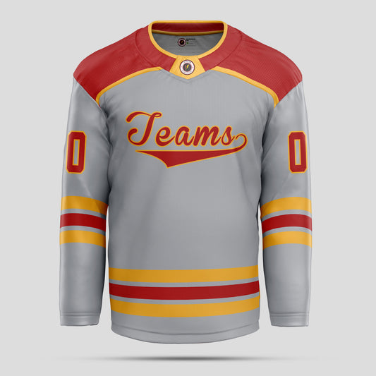 Custom Team Name Gray, Red, and Yellow Ice H...