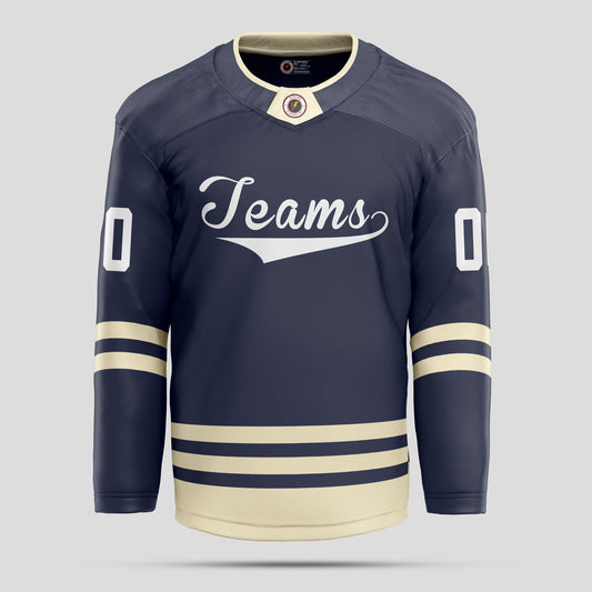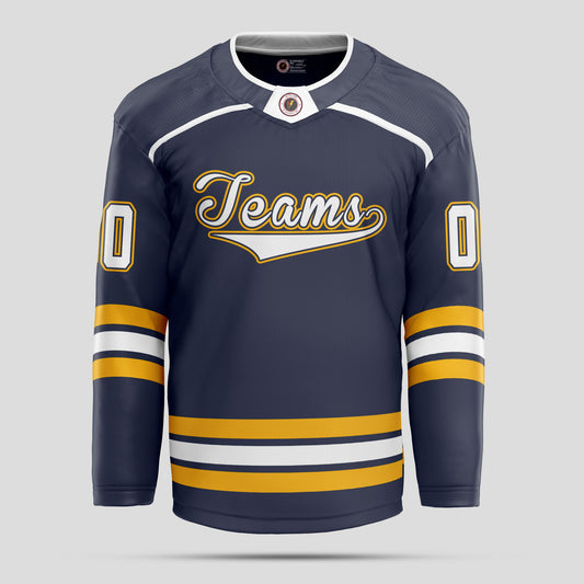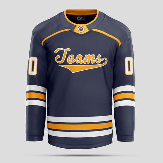 Custom Navy Blue and Old Gold Hockey Jersey ...