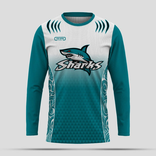 Teal & White Custom Shark Long Sleeve Dr...
