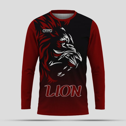 Red & Black Custom Lion Long Sleeve Dri-...