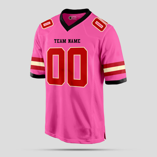 Every team is unique, and so should your jersey be. You can fully customize our limited edition pink football jerseys. Add team logos, names, and numbers to make them your own. Whether you're ordering for a team or an individual player, our custom design services bring your vision to life.