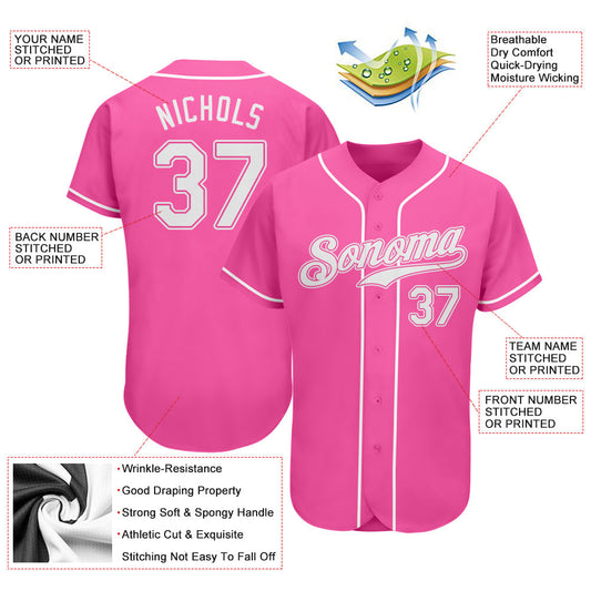 Custom Pink White Authentic Softball Jersey