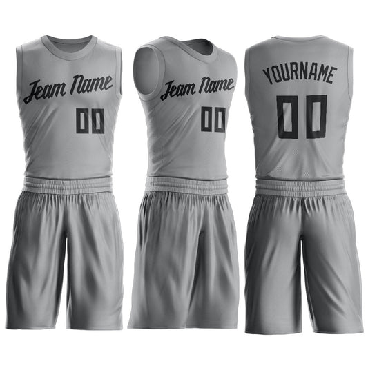 Custom Gray Black Round Neck Suit Basketball...