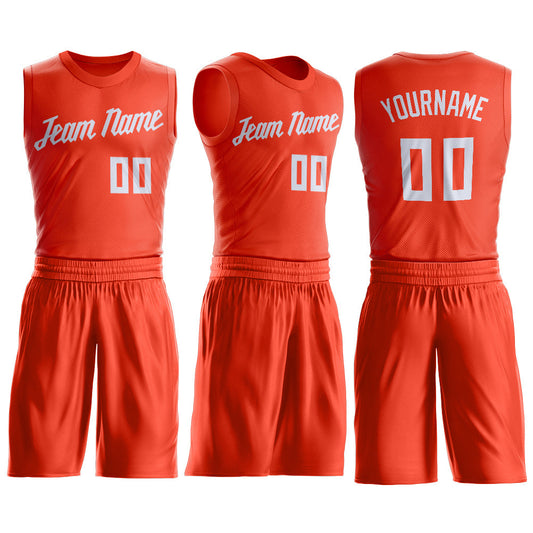 Custom Orange White Round Neck Suit Basketba...