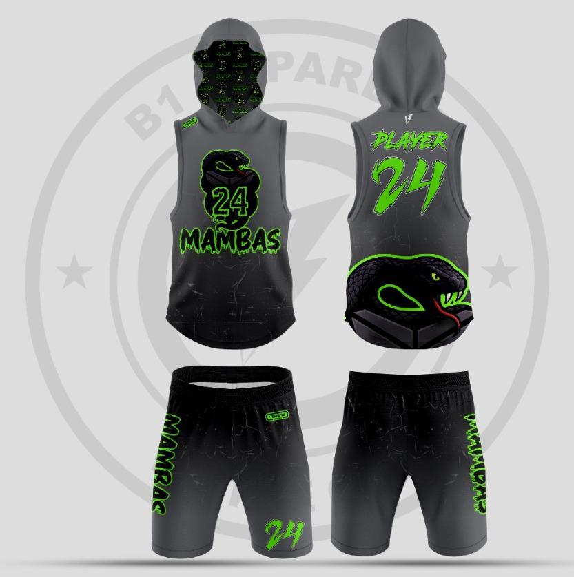 Mambas Grey Black 7v7 Hooded Uniform – Custom Sublimated Performance Jerseys