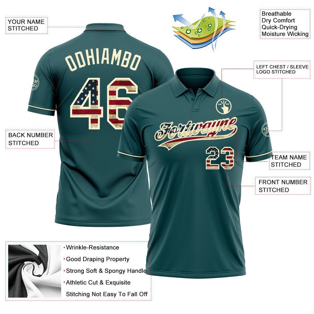 Custom Midnight Green Vintage USA Flag-Cream Performance Vapor Golf Polo Shirt