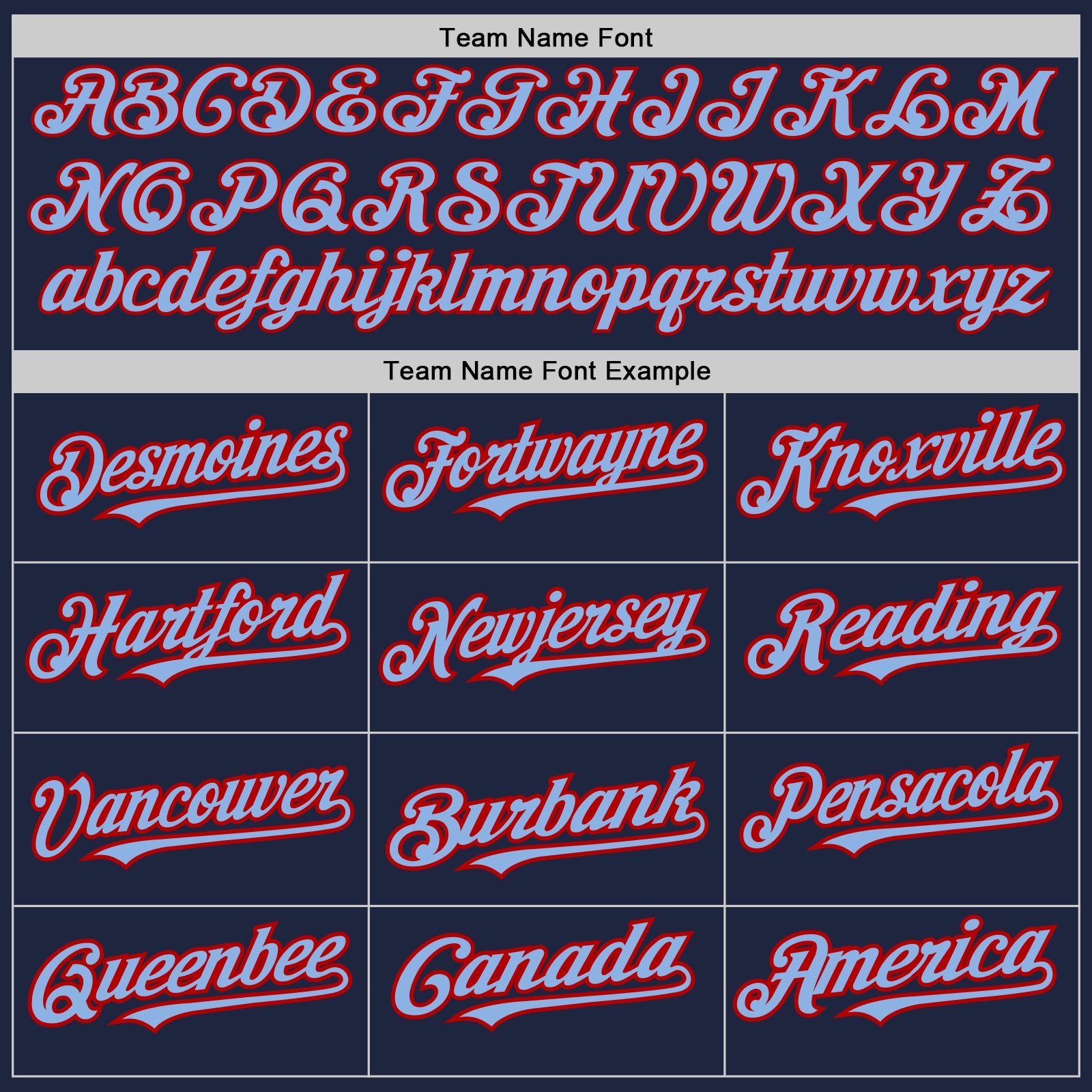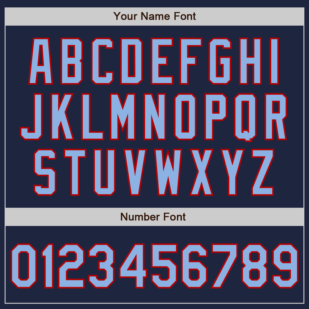Custom Navy Red Pinstripe Light Blue Two-Button Unisex Softball Jersey