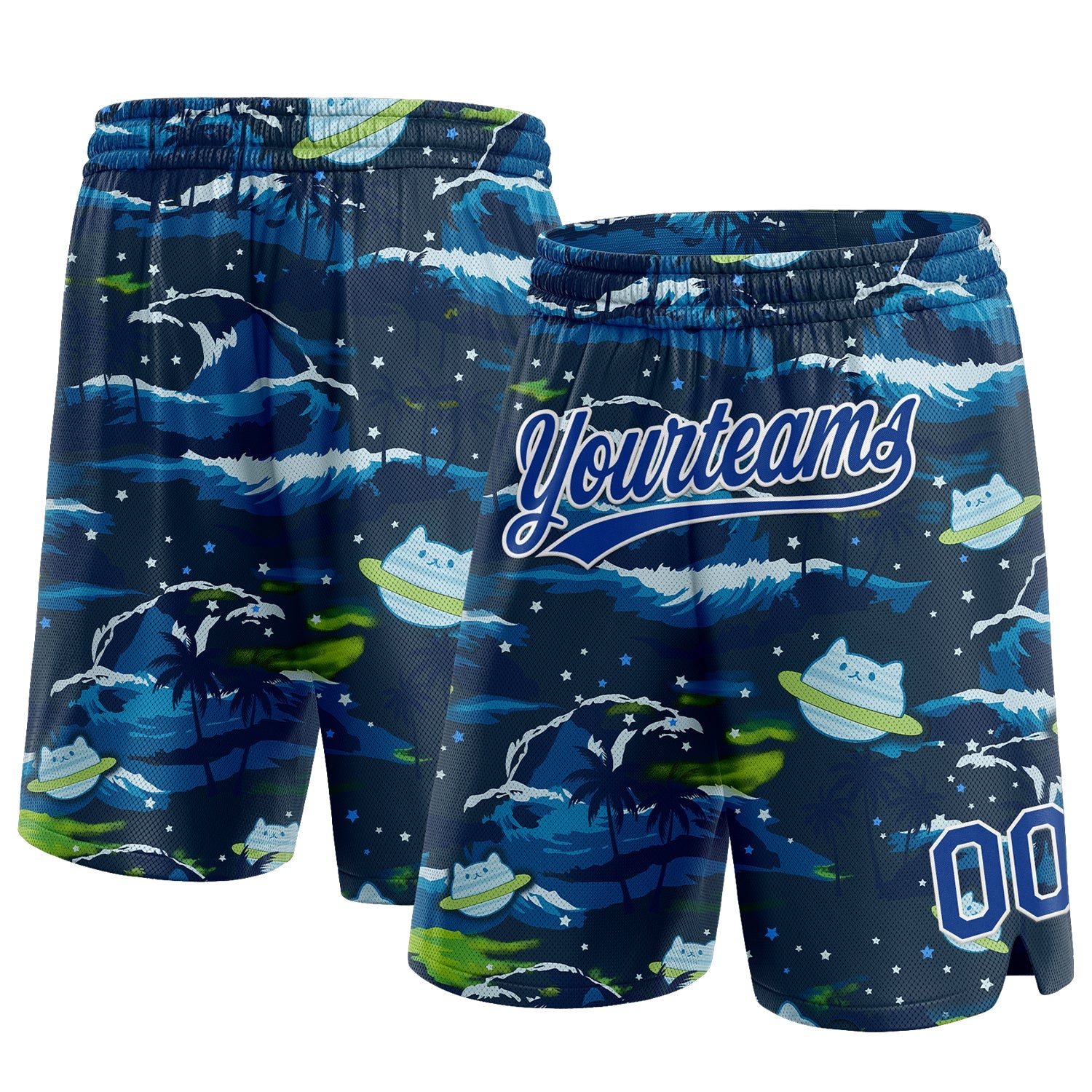 Custom Navy Royal-White 3D Pattern Sea Wave Authentic Basketball Shorts