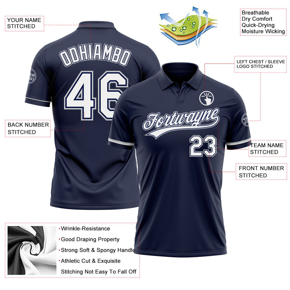Custom Navy White-Gray Performance Vapor Golf Polo Shirt