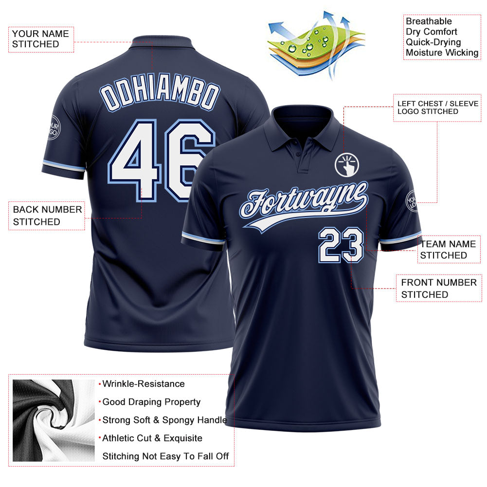 Custom Navy White-Light Blue Performance Vapor Golf Polo Shirt