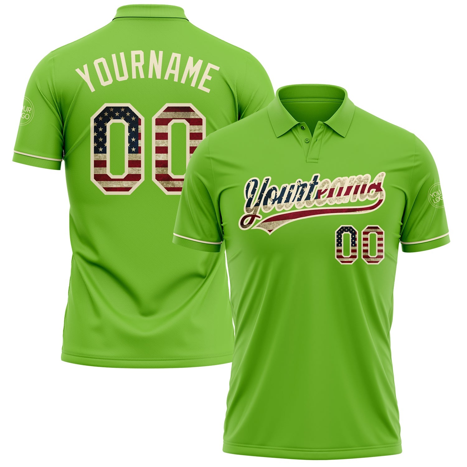 Custom Neon Green Vintage USA Flag-Cream Performance Vapor Golf Polo Shirt