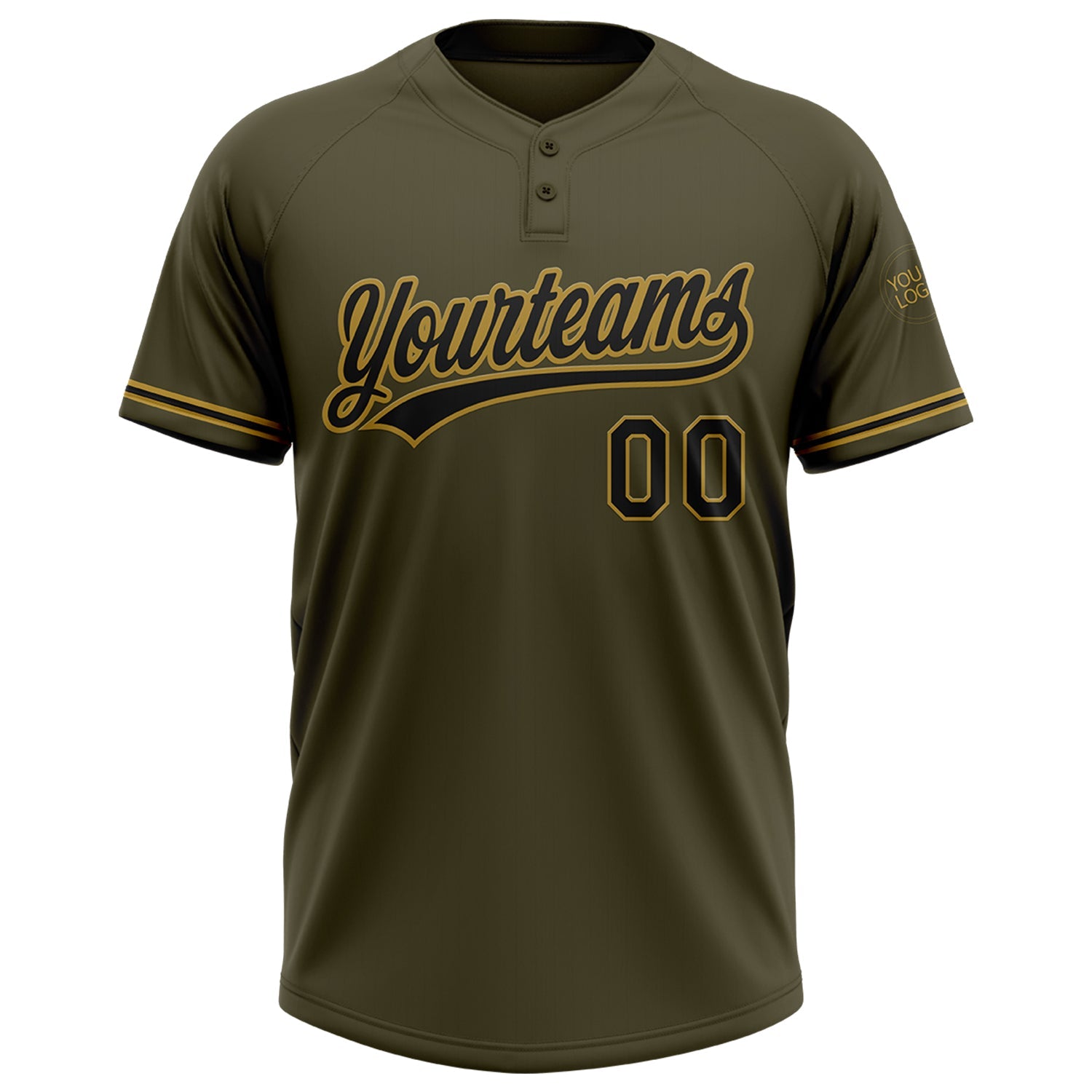 Custom Olive Black-Old Gold Salute To Service Two-Button Unisex Softball Jersey