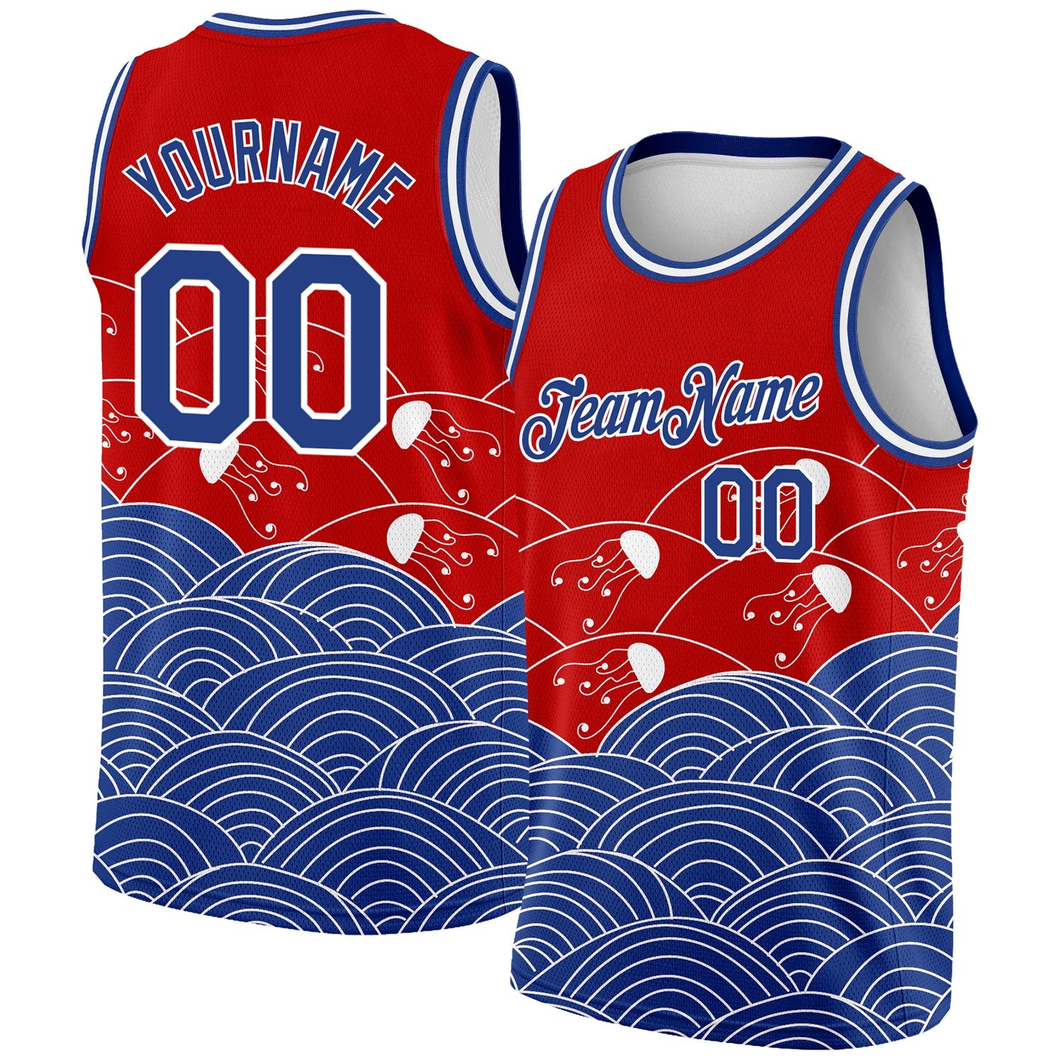 Custom Red Royal-White 3D Pattern Design Jellyfish Authentic Basketball Jersey