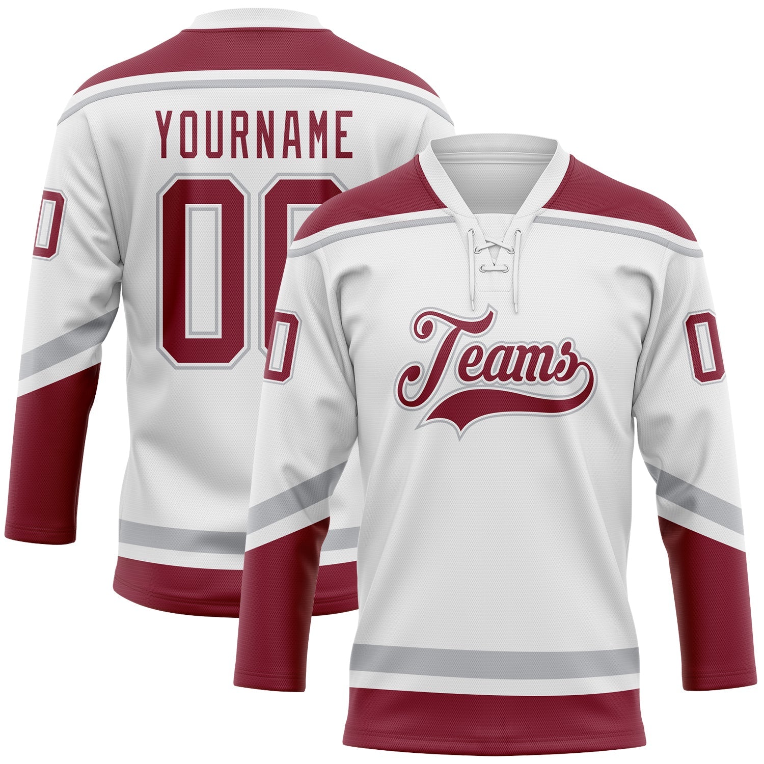 Custom White Crimson-Gray Hockey Lace Neck Jersey