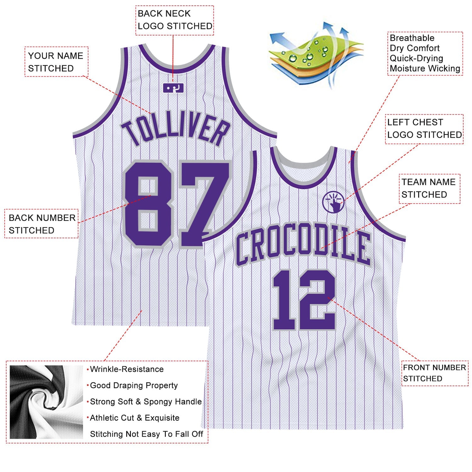 Custom White Purple Pinstripe Purple-Gray Authentic Basketball Jersey